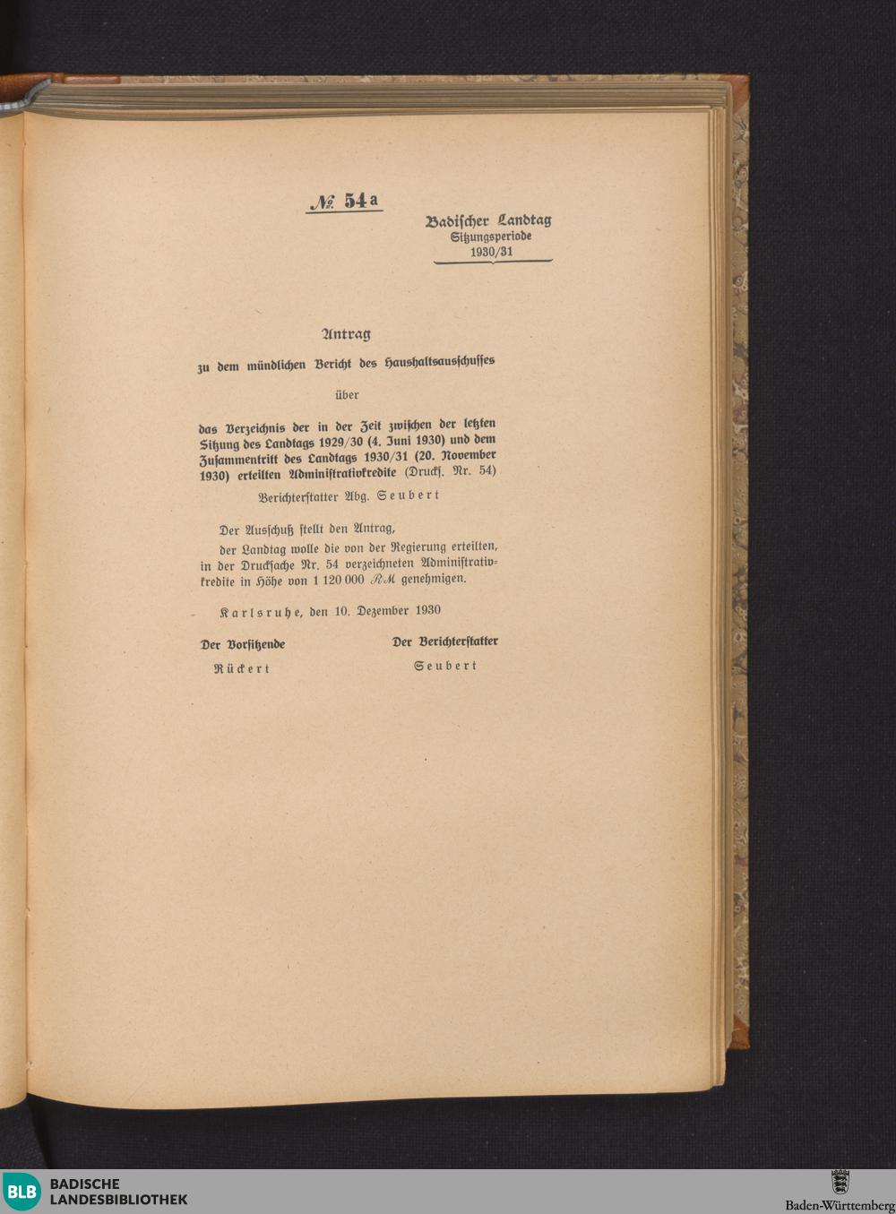 Nr. 54 a. Antrag zu dem mündlichen Bericht des Haushaltsausschusses