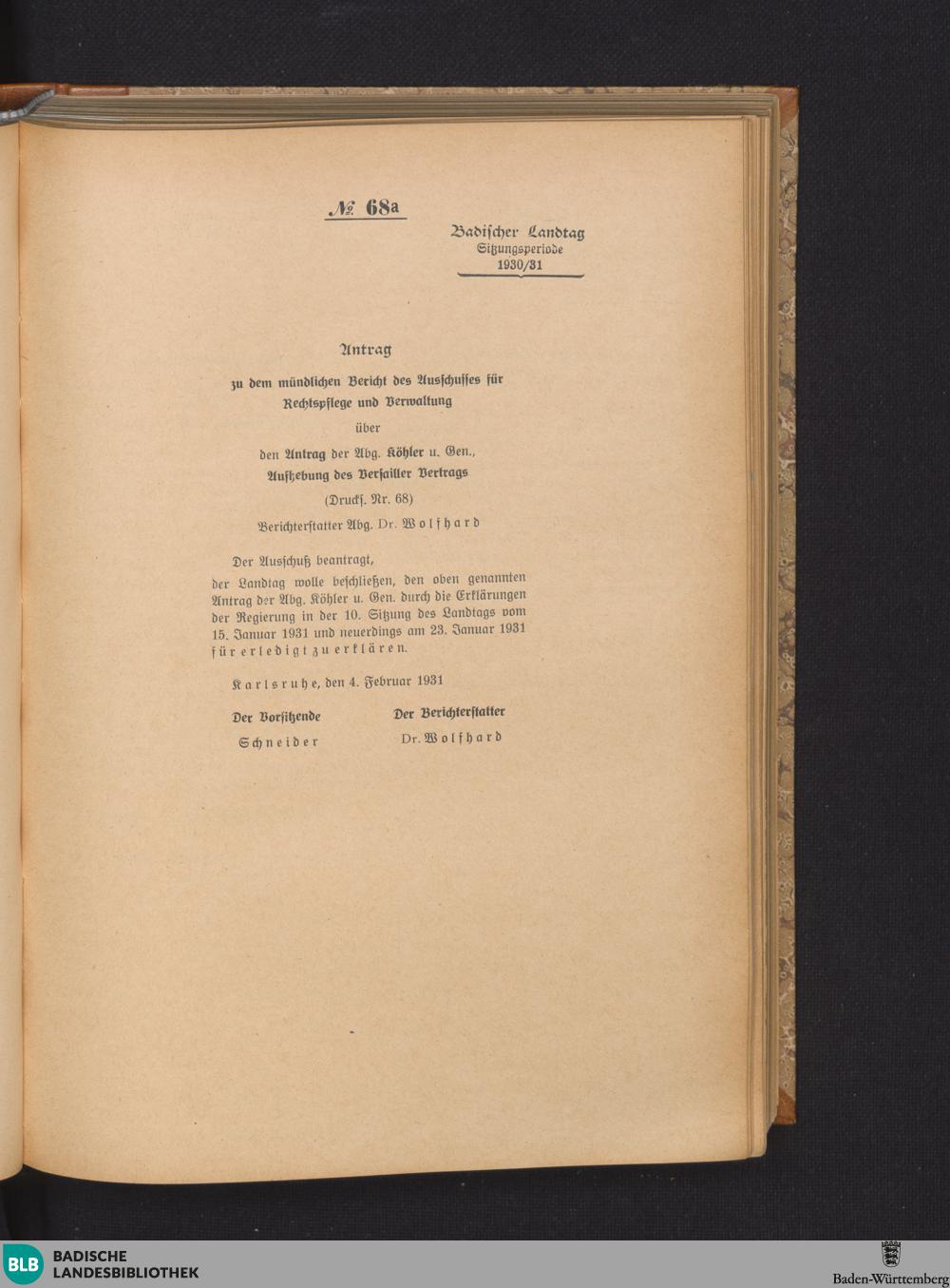Nr. 68 a. Antrag zu dem mündlichen Bericht des Ausschusses für Rechtspflege und ...