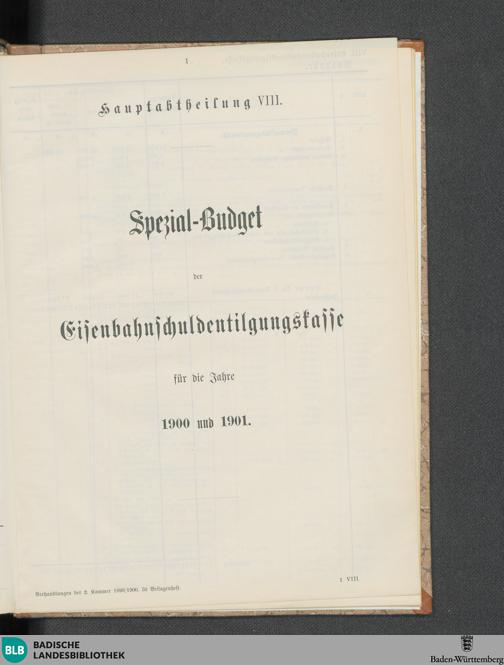 Spezial-Budgets der ausgeschiedenen Verwaltungszweige für die Jahre 1900 und 190...