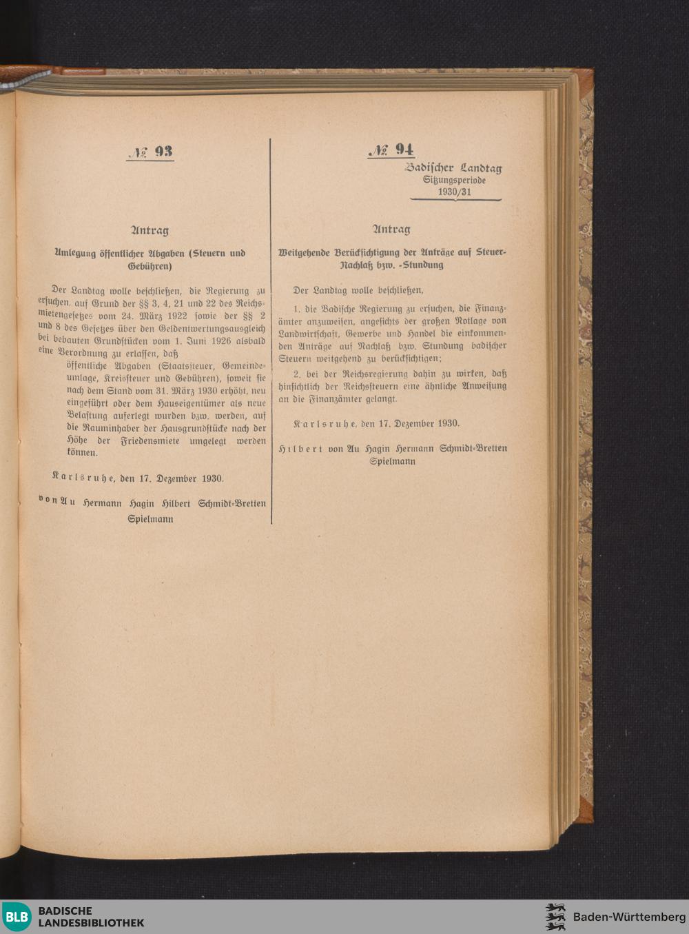 Nr. 93. Antrag. Umlegung öffentlicher Abgaben (Steuern und Gebühren)