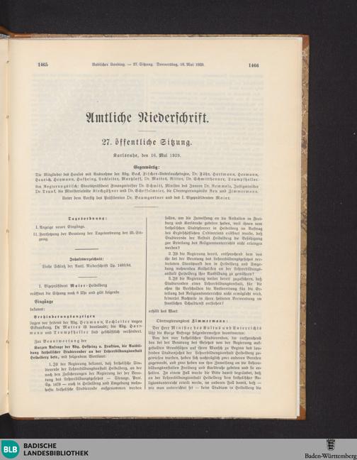 27. Sitzung (16.05.1929)