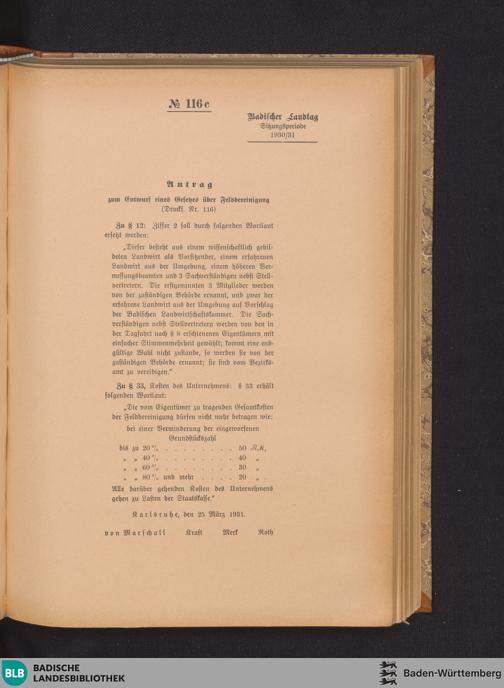 Nr. 116 c. Antrag zum Entwurf eines Gesetzes über Feldbereinigung