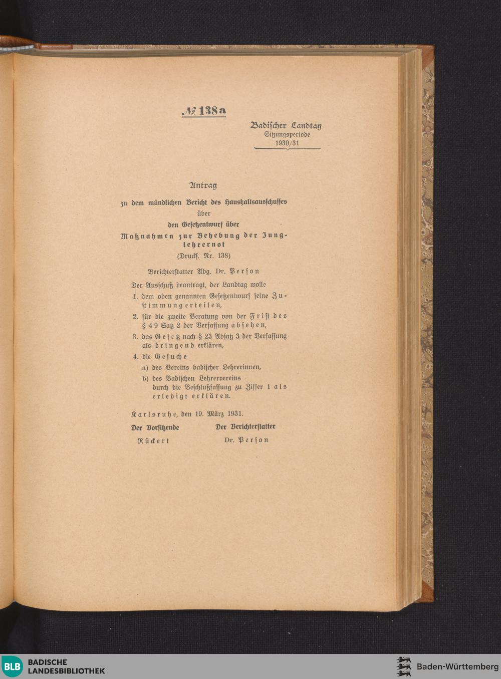 Nr. 138 a. Antrag zu dem mündlichen Bericht des Haushaltsausschusses