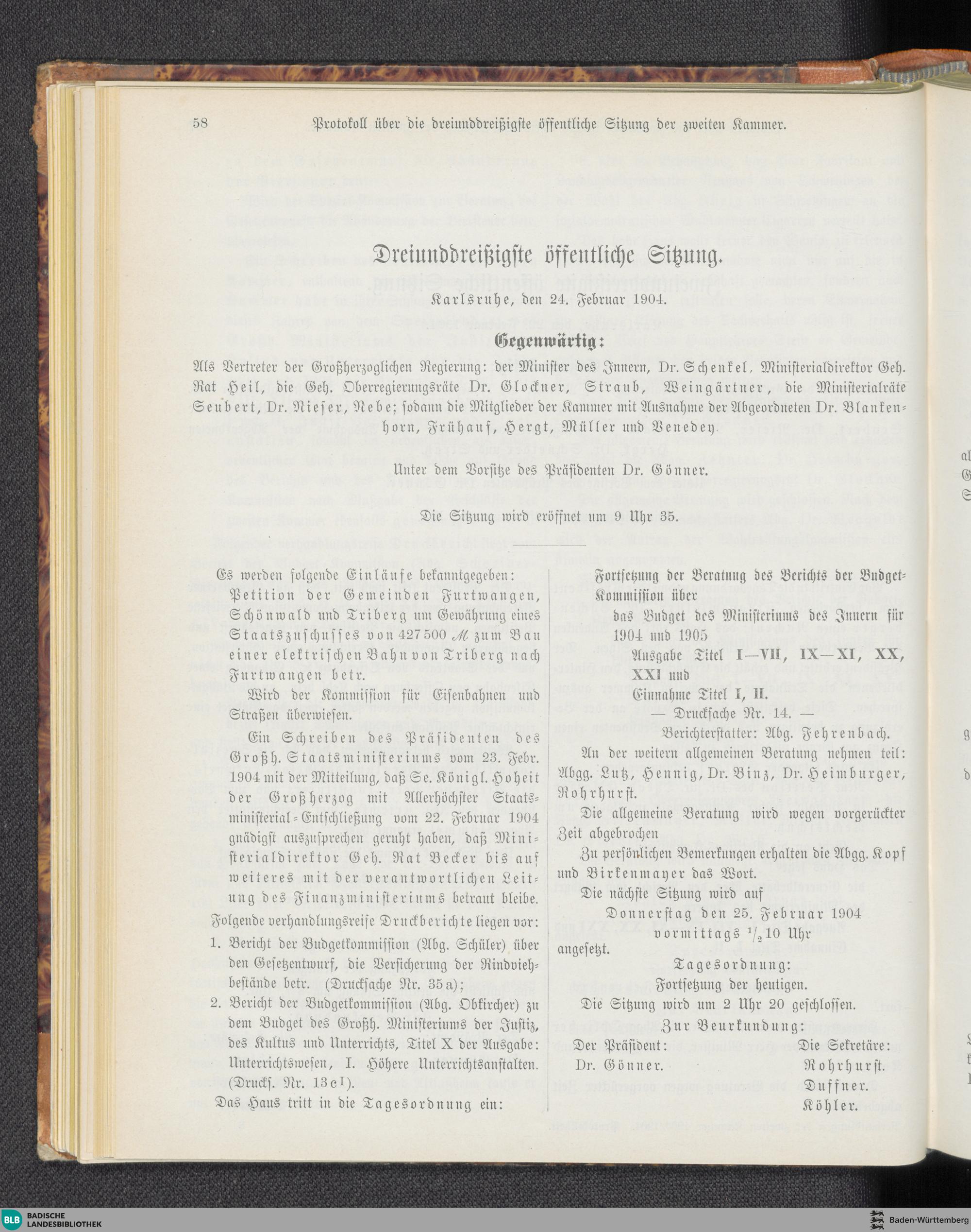 33. Sitzung (24.02.1904)