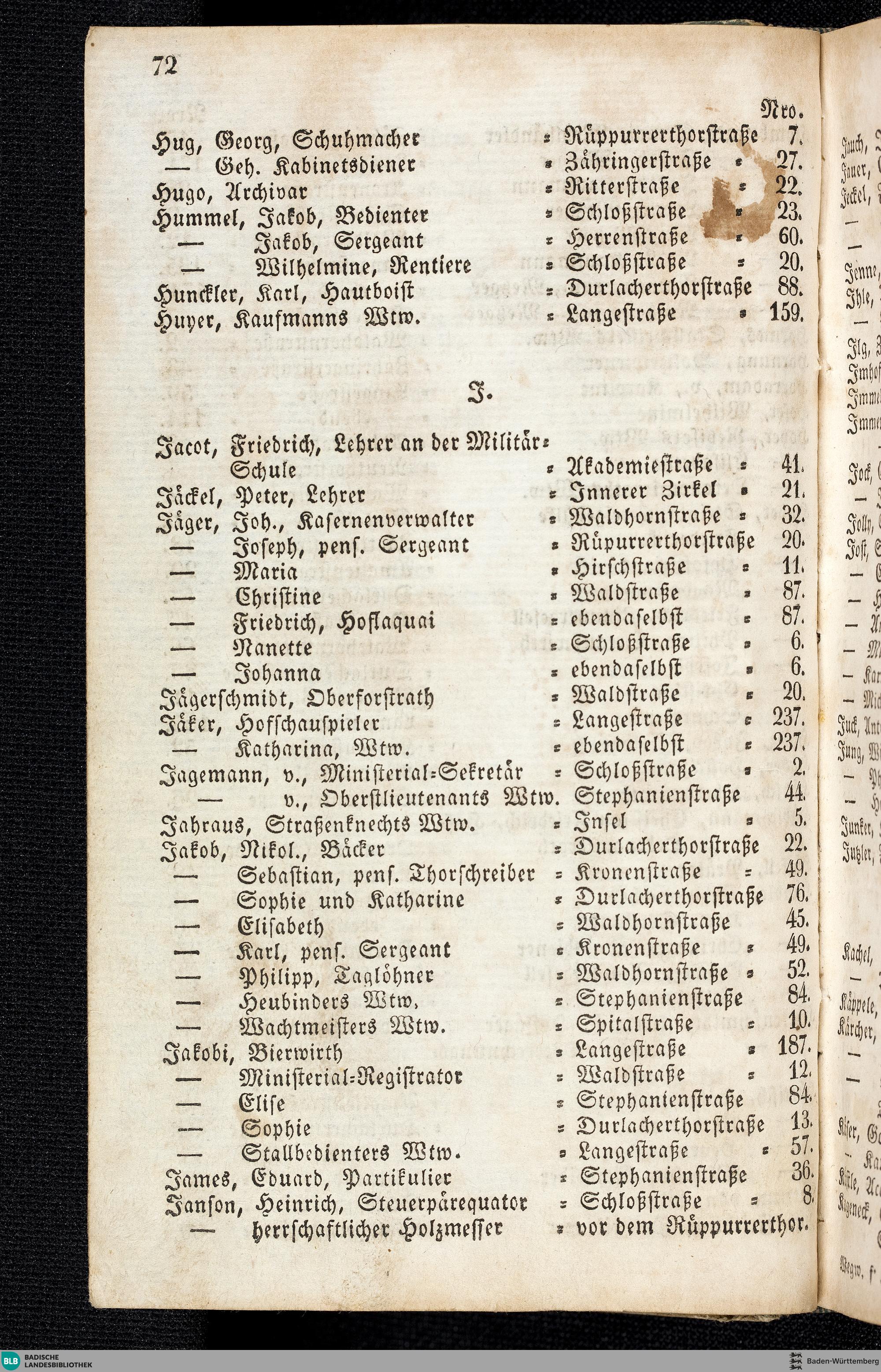 Verzeichniß der Einwohner nach alphabetischer Ordnung, nebst Angabe ihrer Wohnun...