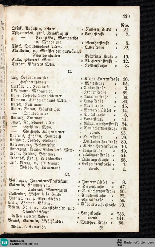 Verzeichniß der Einwohner nach alphabetischer Ordnung, nebst Angabe ihrer Wohnun...