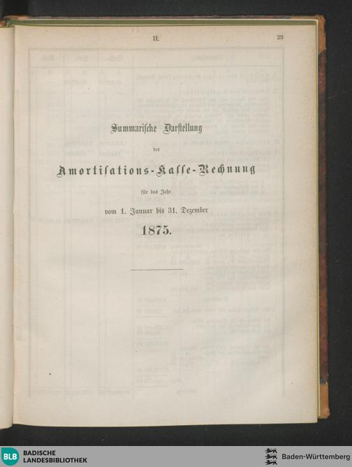 Summarische Darstellung der Amortisations-Kasse-Rechnung für 1875