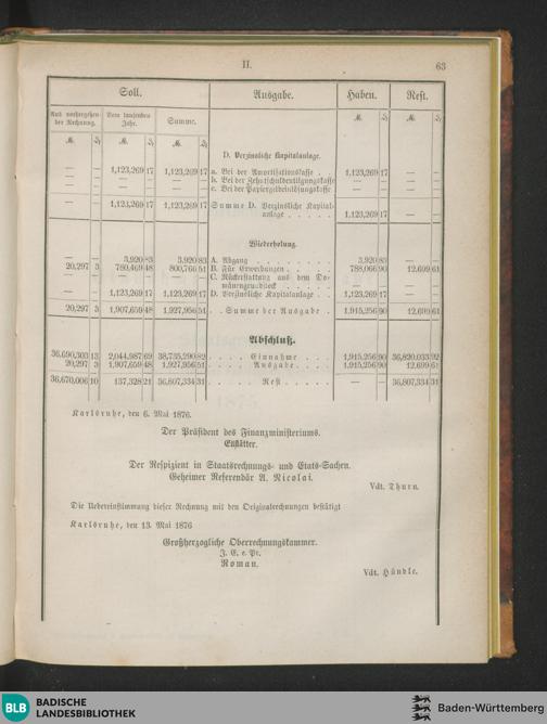 Rechnung über die Einnahmen und Ausgaben für den Domänen-Grundstock für 1875