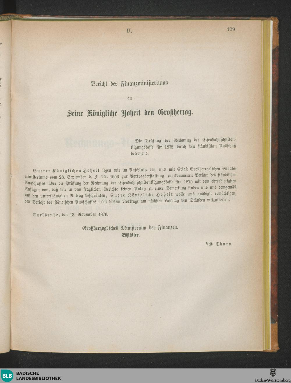 Bericht des Finanzministeriums an Seine Königliche Hoheit den Großherzog, die Prüfung...
