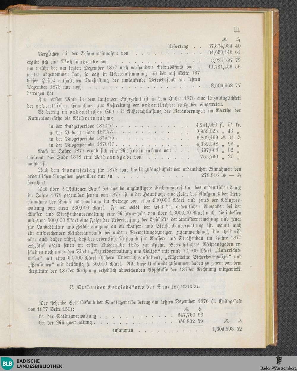 Bericht des Finanzministeriums an Seine Königliche Hoheit den Großherzog, die Rechnungsnachweisungen...