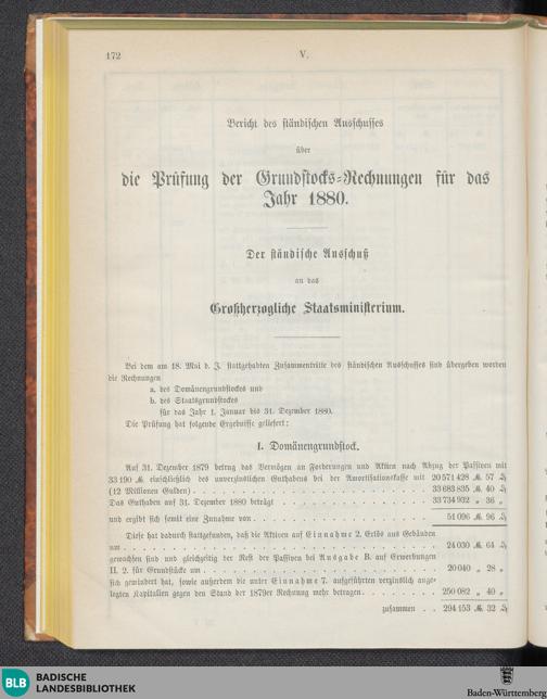 Bericht des ständischen Ausschusses über die Prüfung der Grundstocks-Rechnungen
