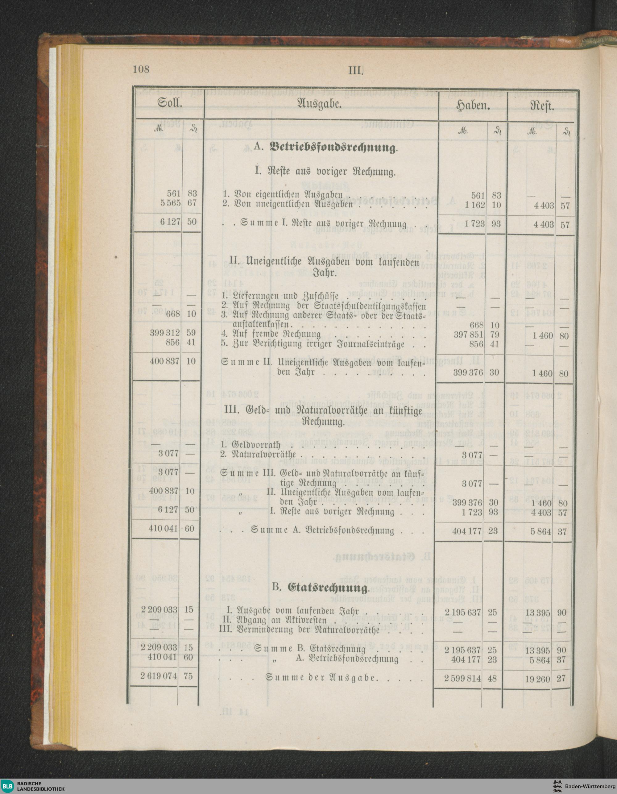 Summarische Darstellung der Hauptrechnung für 1883