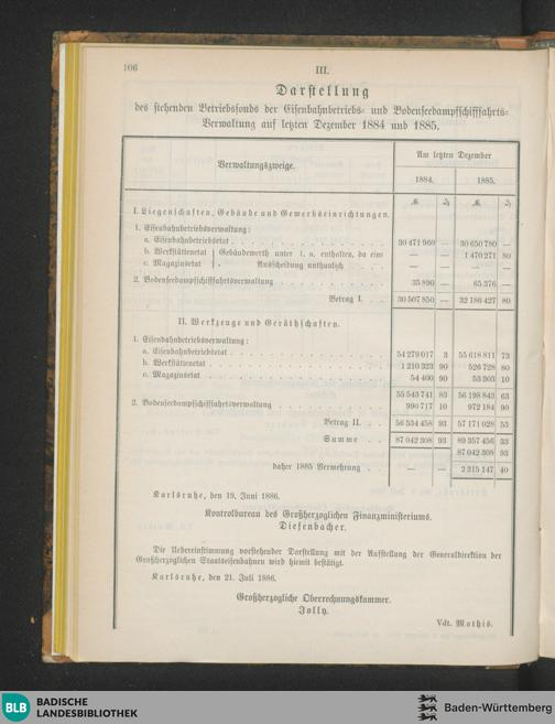Darstellung des stehenden Betriebsfonds der Eisenbahnbetriebs- und Bodenseedampfschifffahrtsverwaltung...