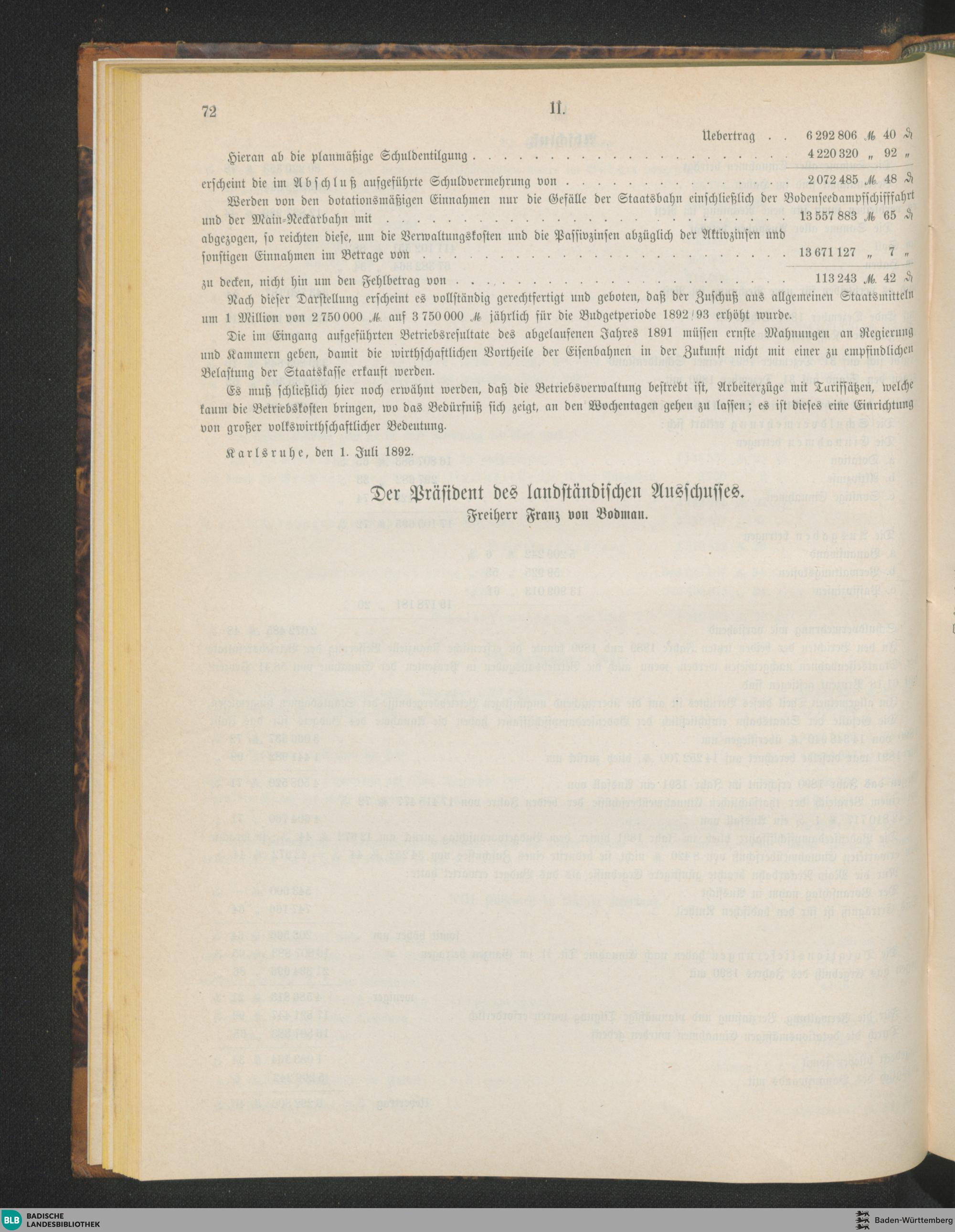 Bericht des ständischen Ausschusses über die Prüfung der Eisenbahnschuldentilgun...