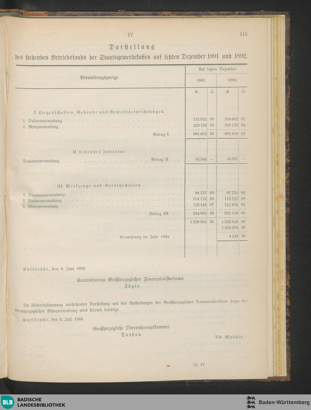 Vierte Abtheilung. 1892