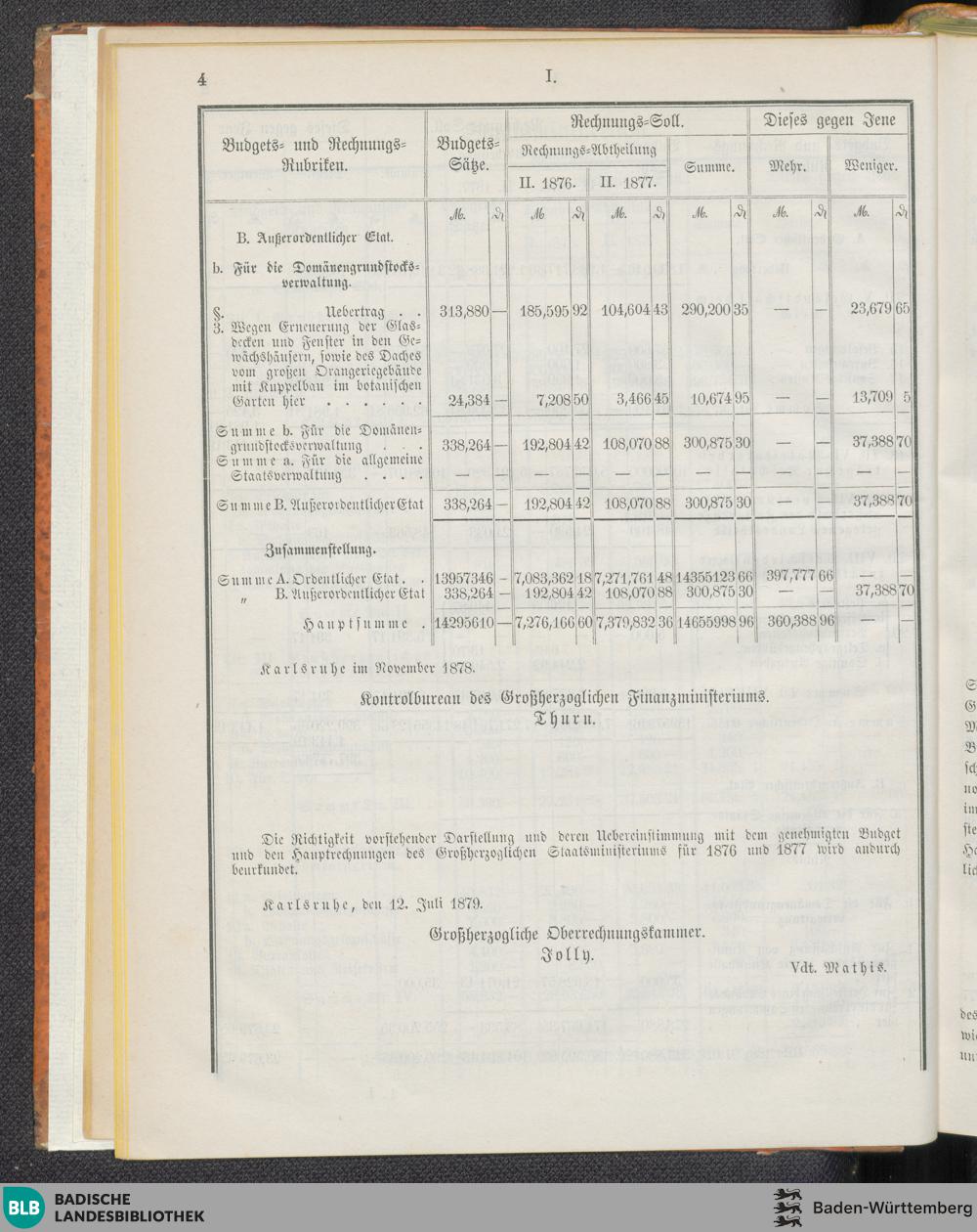 Vergleichende Darstellung für 1876 und 1877 nebst Erläuterungen hierzu