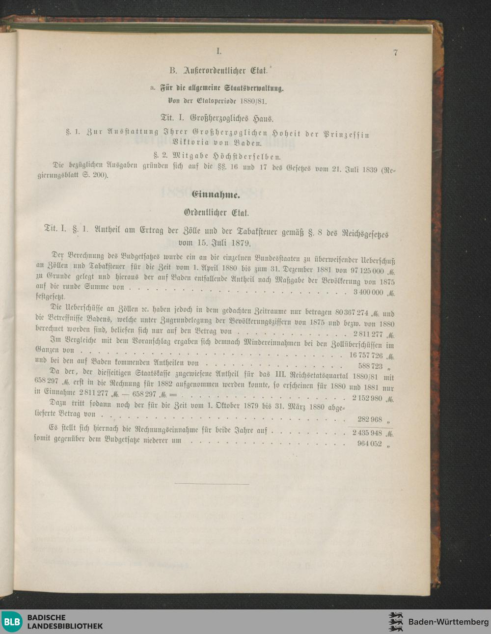 Erster Abschnitt. Verwaltungszweige, deren Rechnungsergebnisse in der Hauptstaatsrechnung...