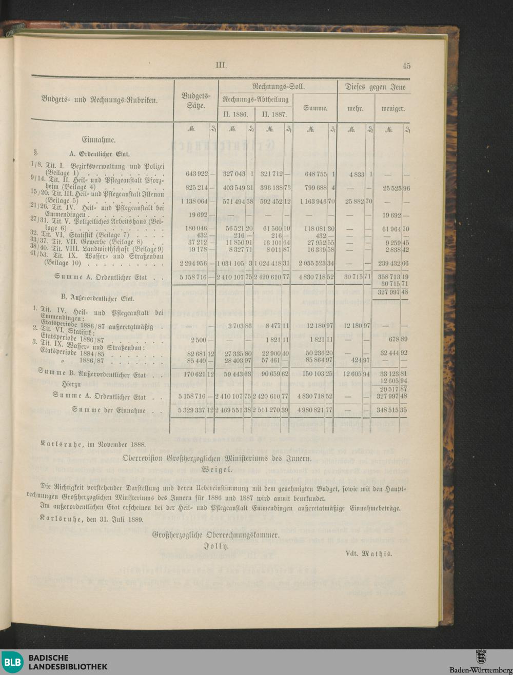 B. Vergleichende Darstellung für 1886 und 1887 mit Erläuterungen