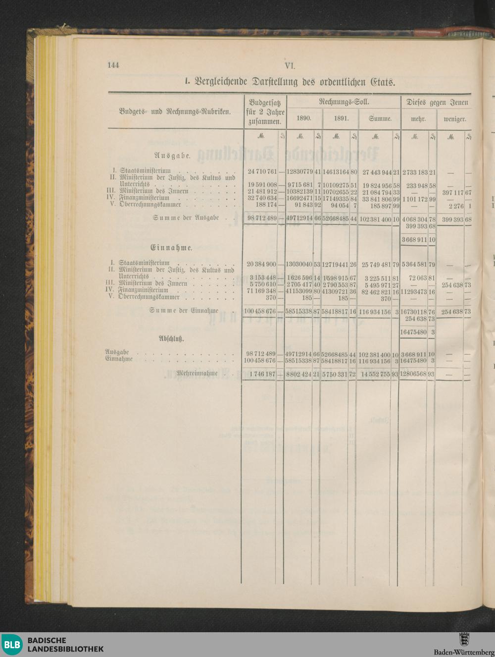 B. Vergleichende Darstellung für 1890 und 1891 mit Erläuterungen