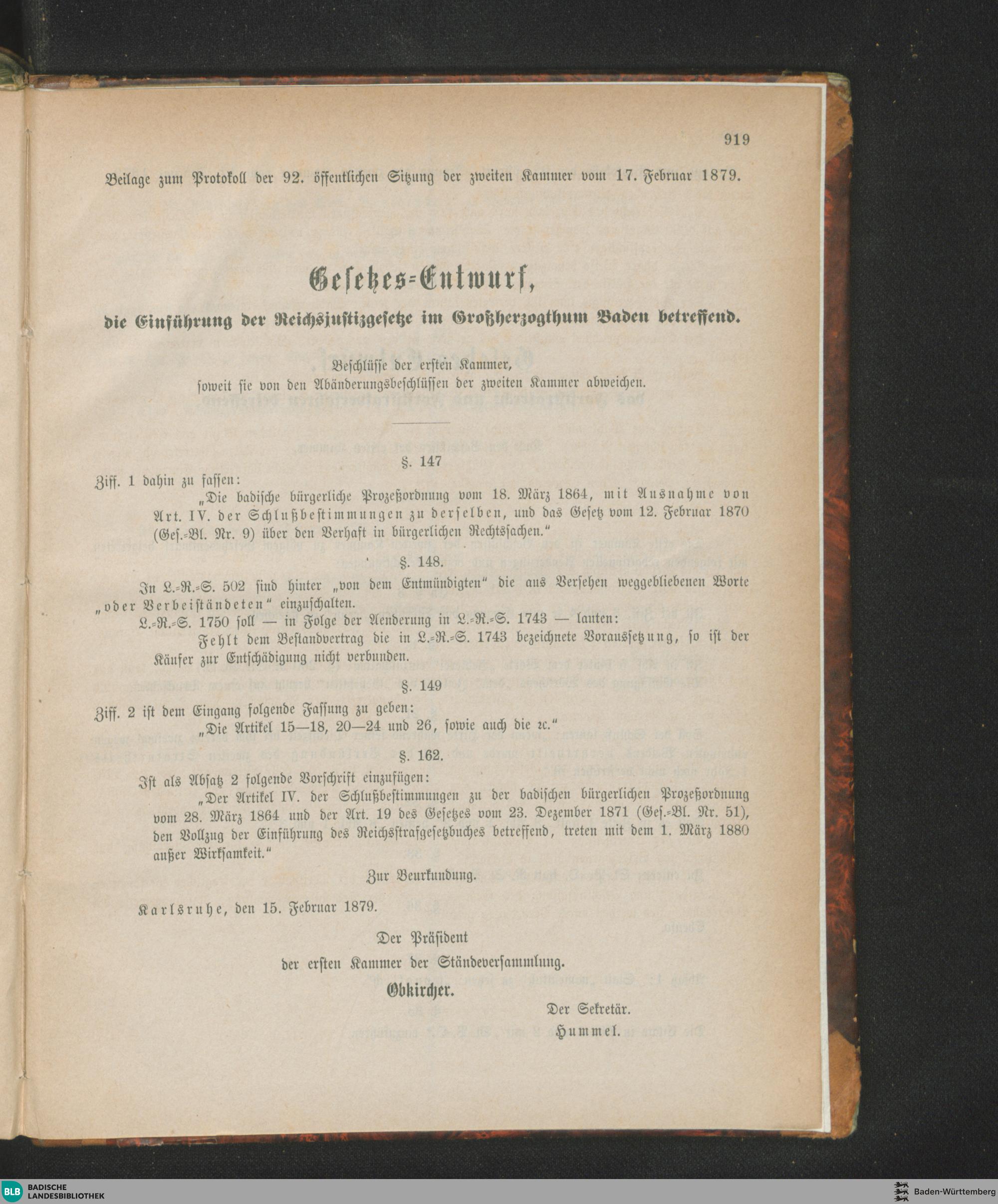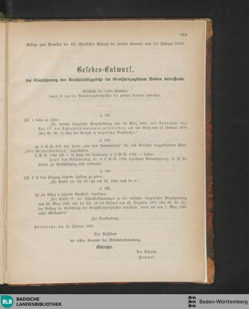 Beilagen zur 92. Sitzung (17.02.1879)