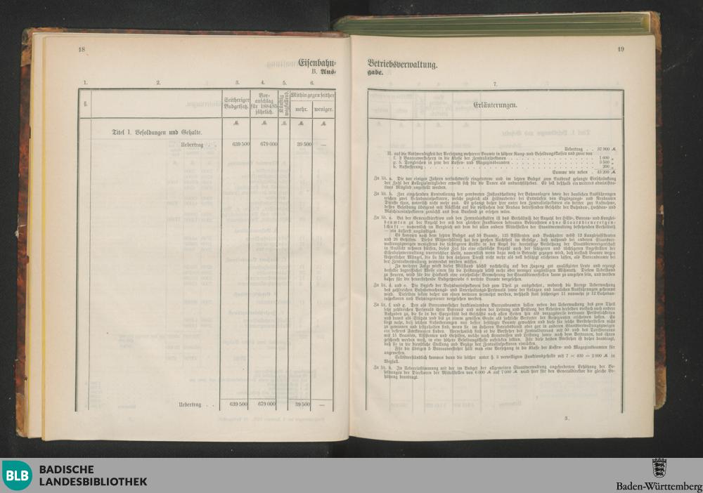 Budget der Eisenbahn-Betriebsverwaltung für die Jahre 1884 und 1885. Abtheilung I....
