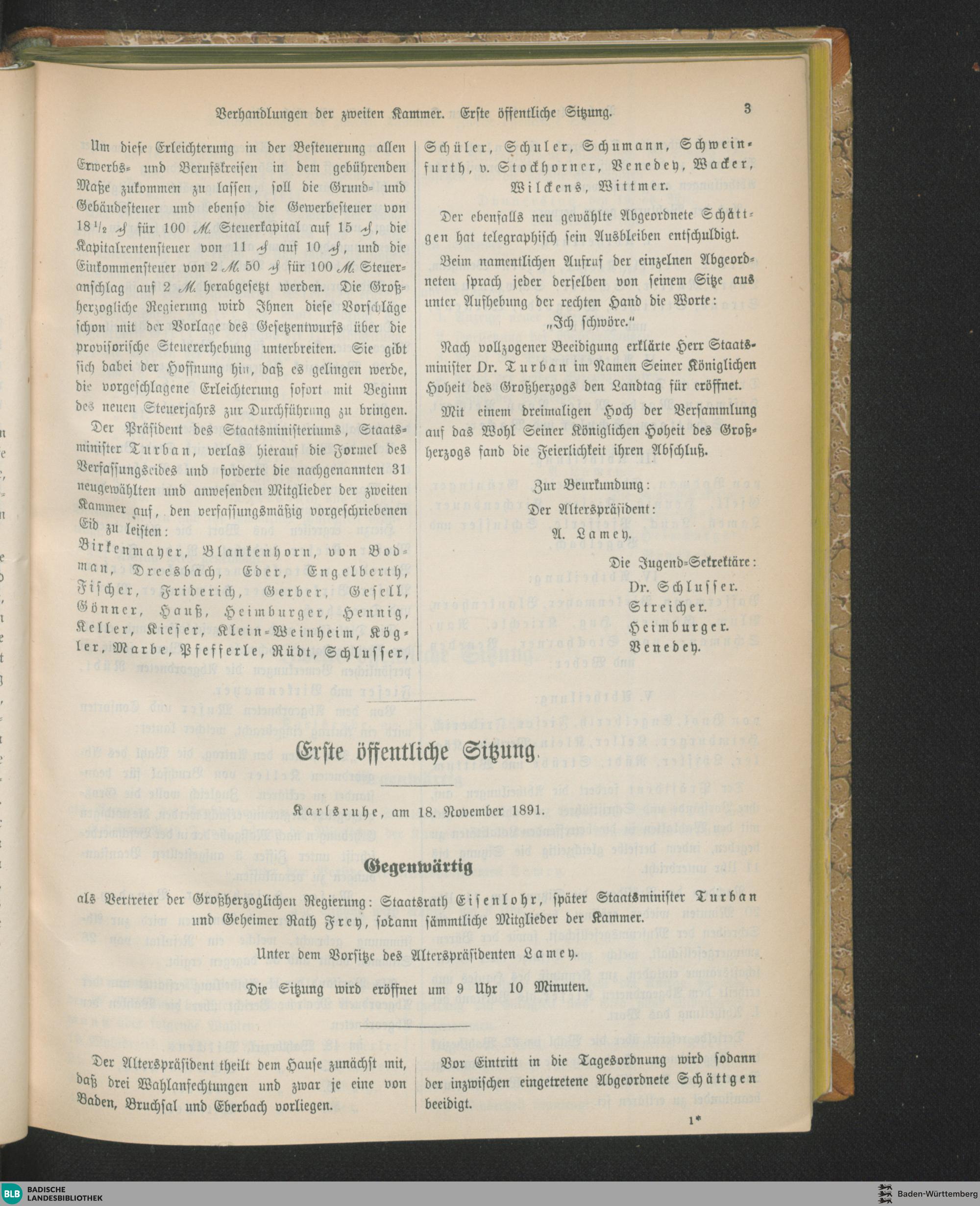 Protokoll über die feierliche Eröffnung der Ständeversammlung (17.11.1891)