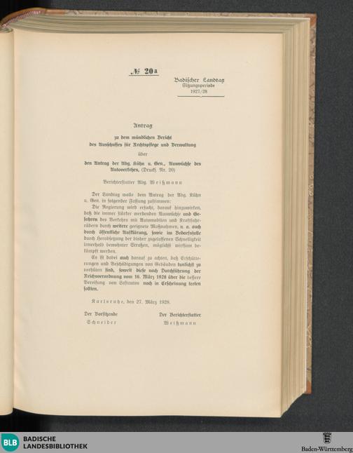Nr. 20 a. Antrag zu dem mündlichen Bericht des Ausschusses für Rechtspflege und ...