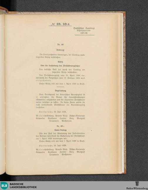 Nr. 89. Gesetz über die Aufhebung des Fleischsteuergesetzes