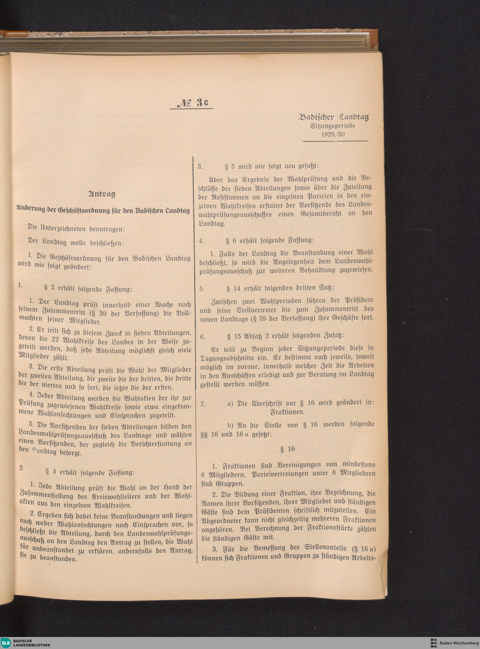 Nr. 3 c. Änderung der Geschäftsordnung für den Badischen Landtag