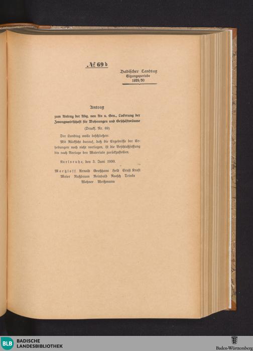 Nr. 69 b. Antrag zum Antrag der Abg. von Au u. Gen., Lockerung der Zwangswirtschaft...
