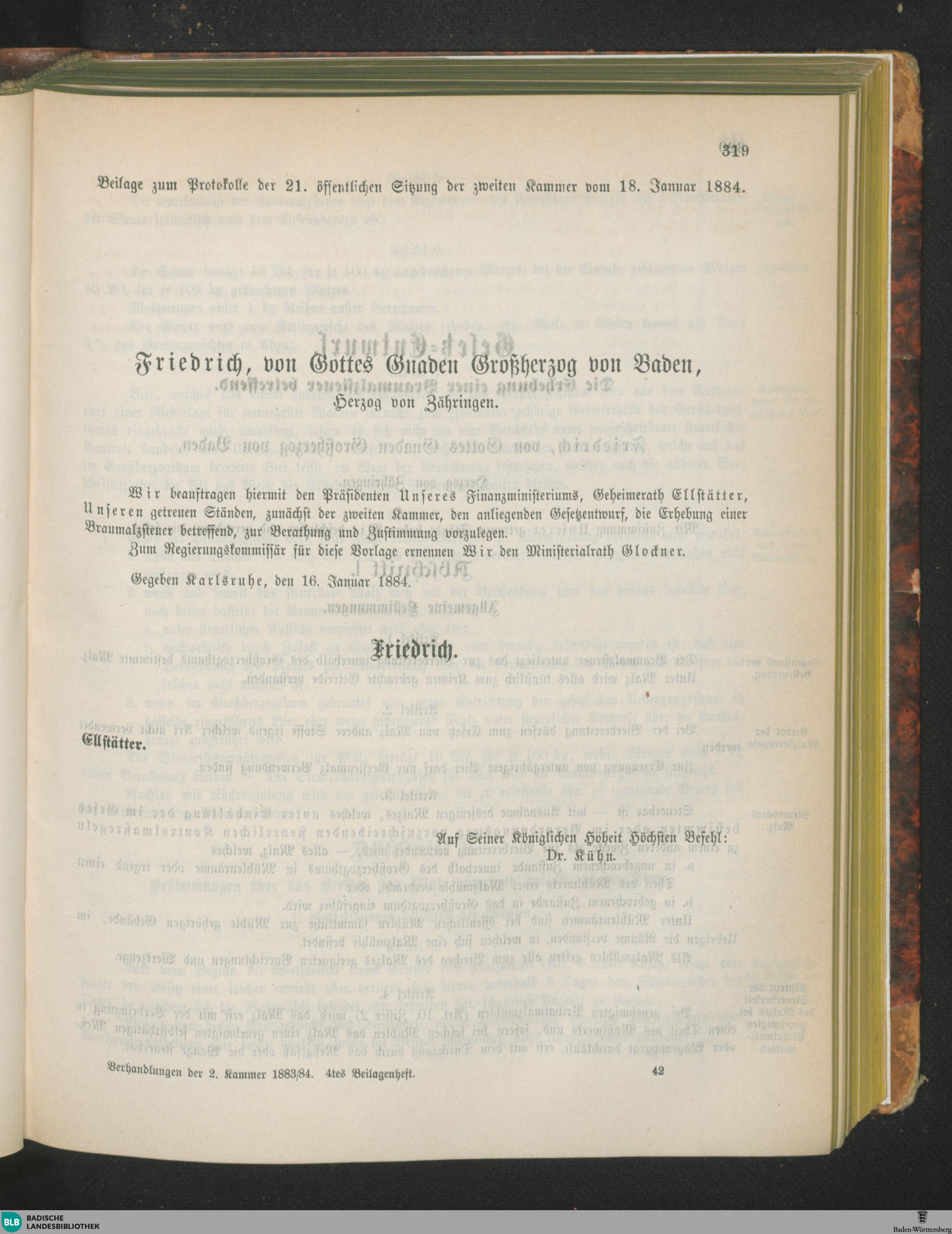 Beilagen zur 21. Sitzung (18.01.1884)