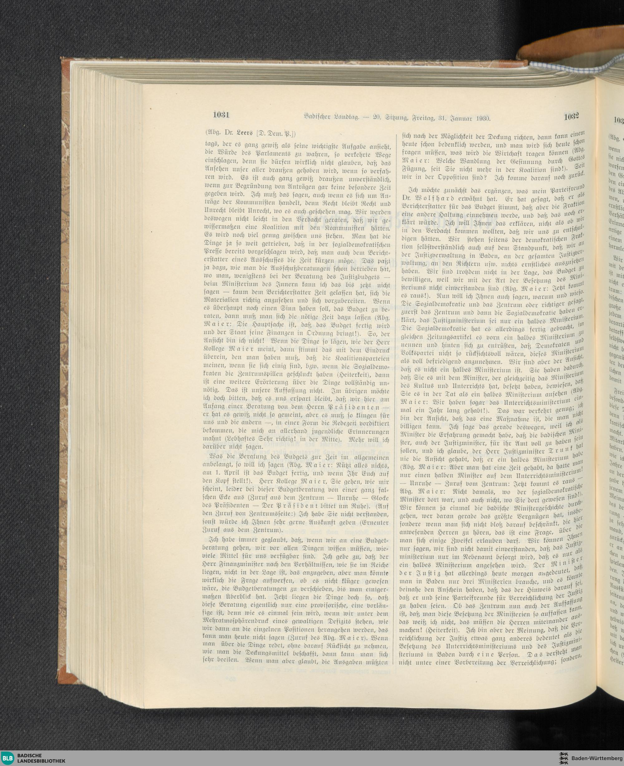20. Sitzung (31.01.1930)