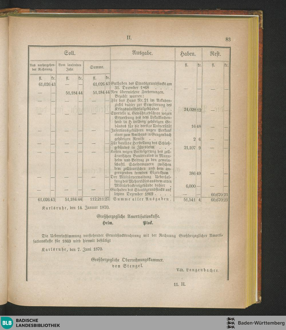 Rechnung über die Einnahmen und Ausgaben für den Staatsgrundstock