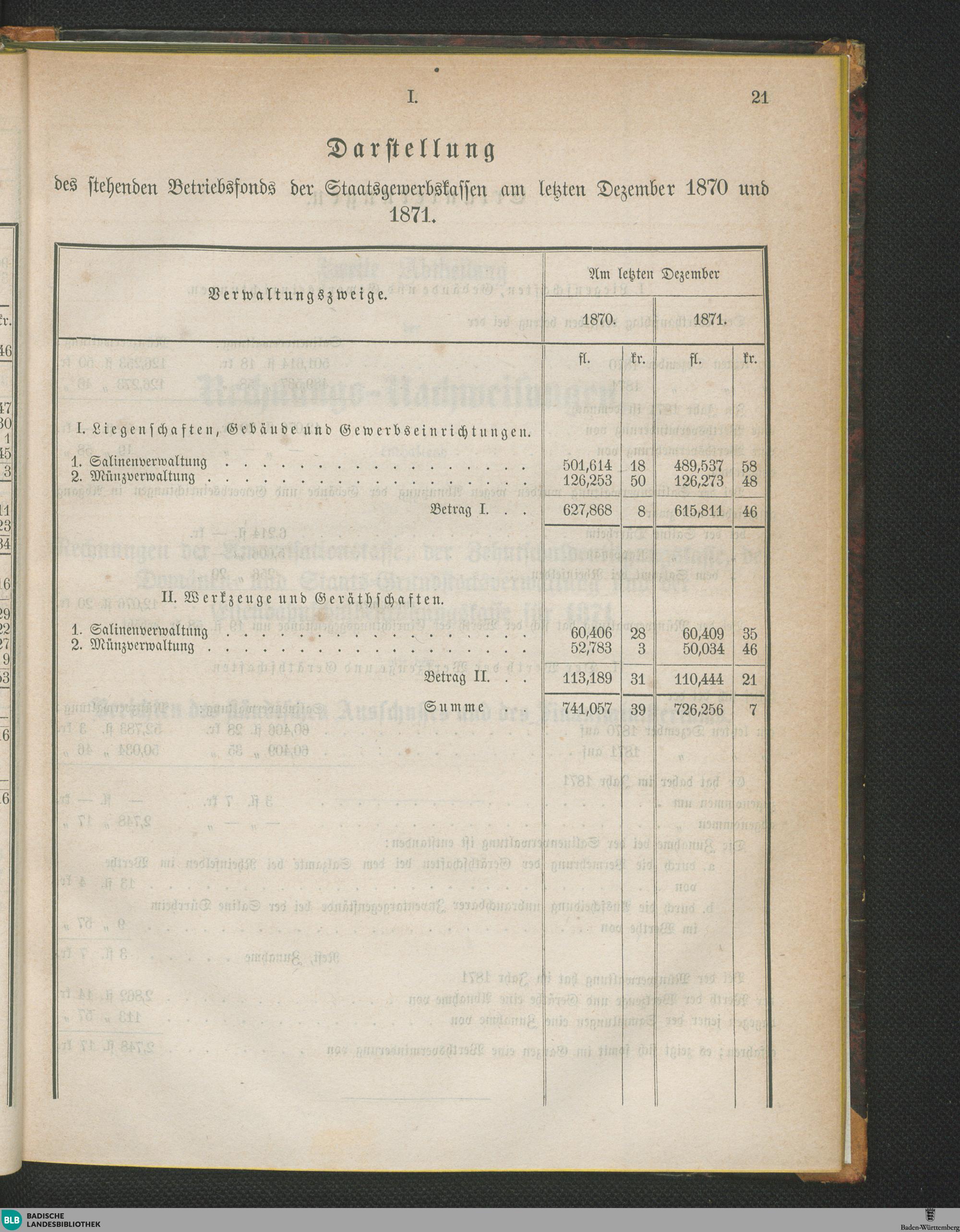 Darstellung des stehenden Betriebsfonds der Staatsgewerbskassen am letzten Dezember...