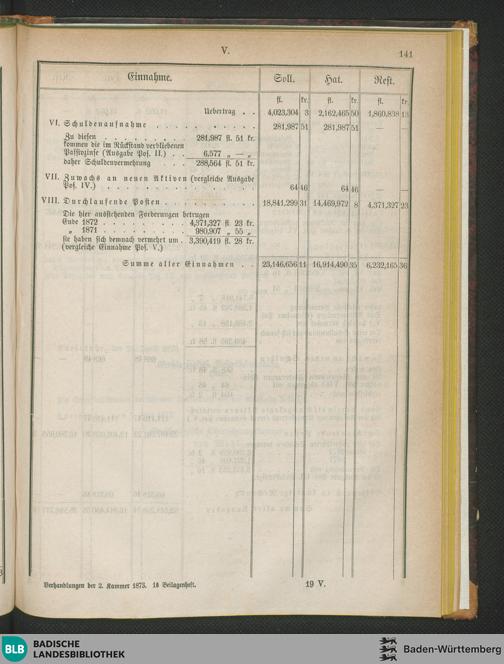 Summarische Darstellung der Amortisations-Kasse-Rechnung