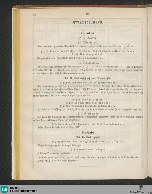 Vergleichende Darstellung für 1872 und 1873 nebst Erläuterungen hierzu