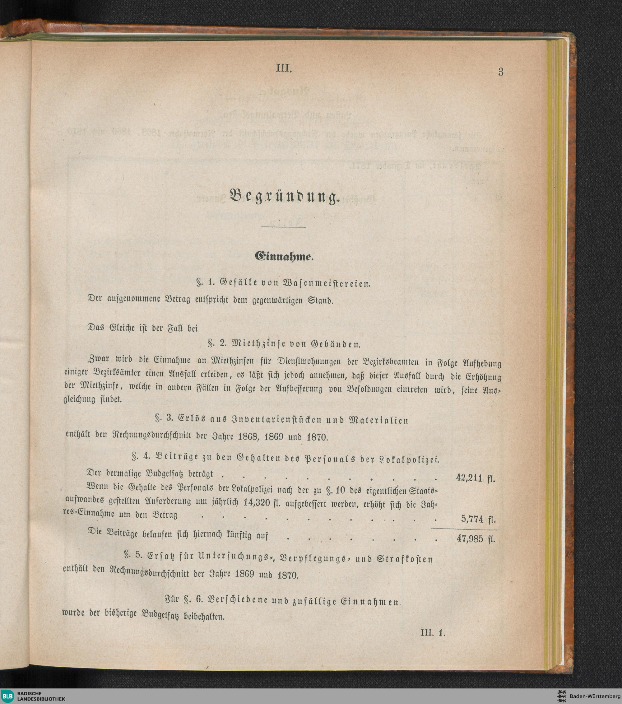 Special-Budget für 1872 und 1873