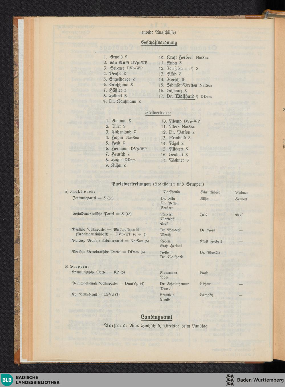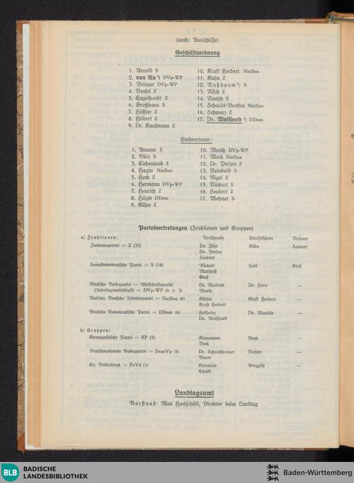 Nr. 1 a. Organe des Badischen Landtags