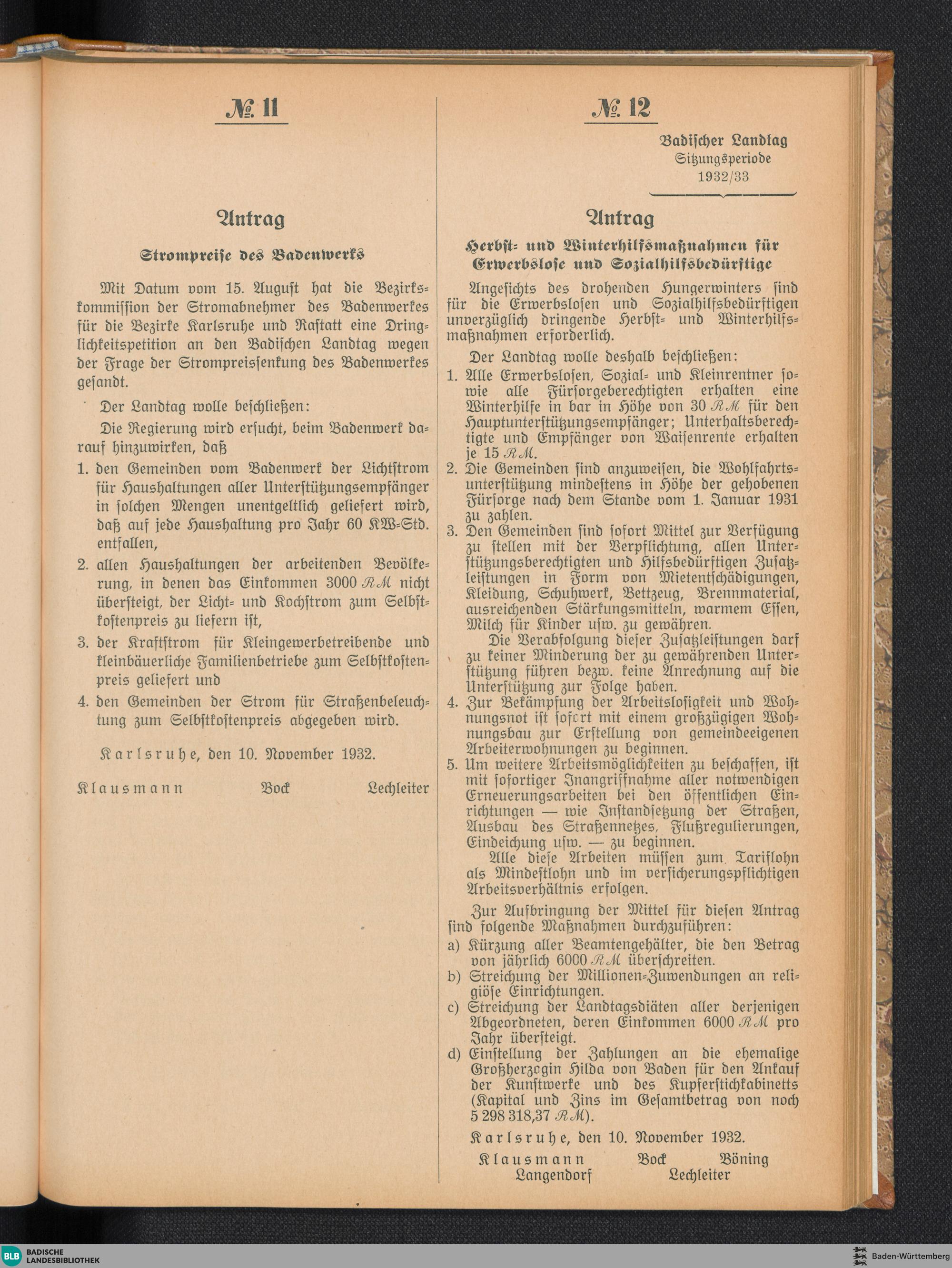 Nr. 11. Antrag. Strompreise des Badenwerks