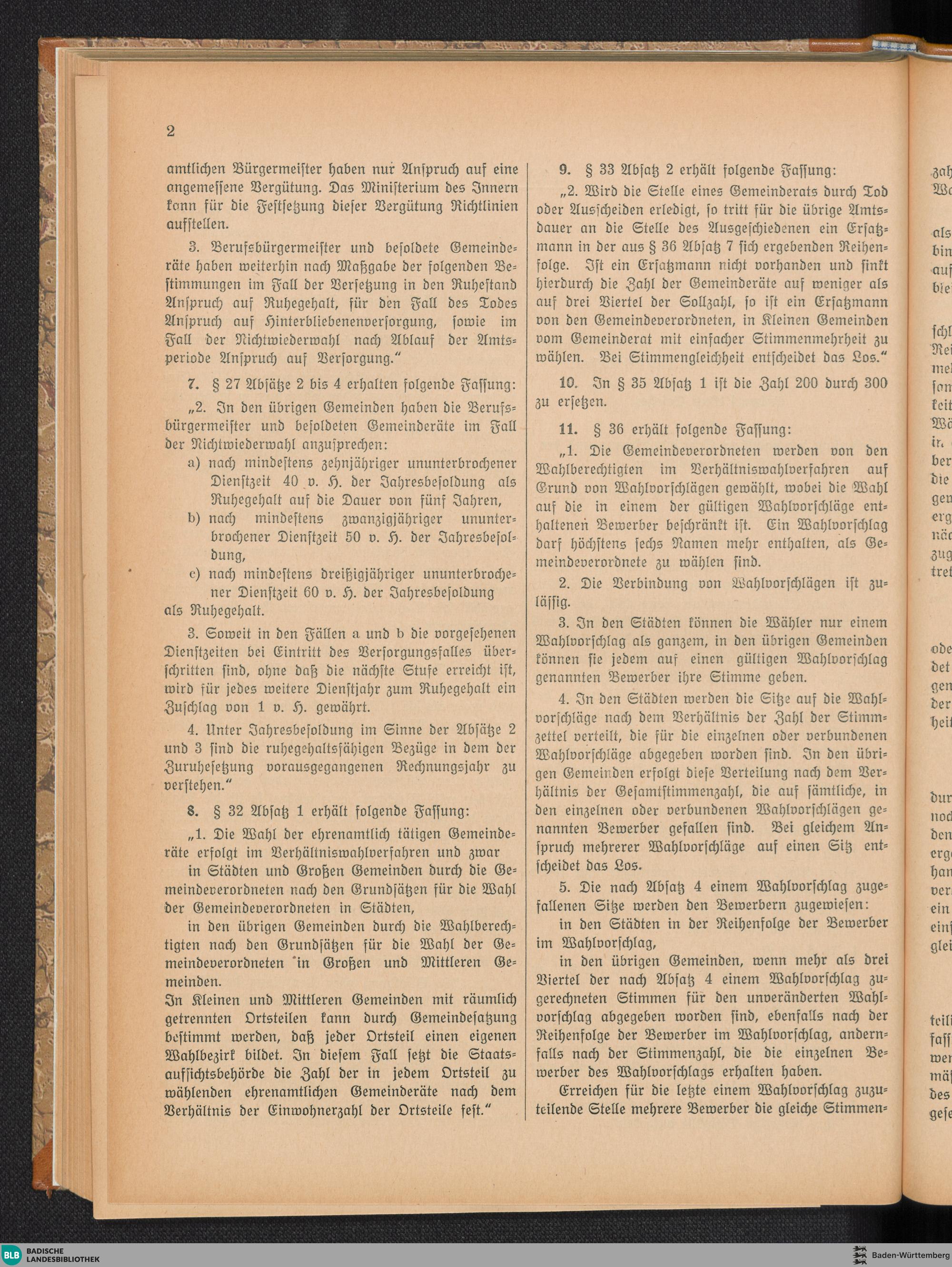 Nr. 70. Entwurf eines Gesetzes zur Änderung der badischen Gemeindeordnung und der...