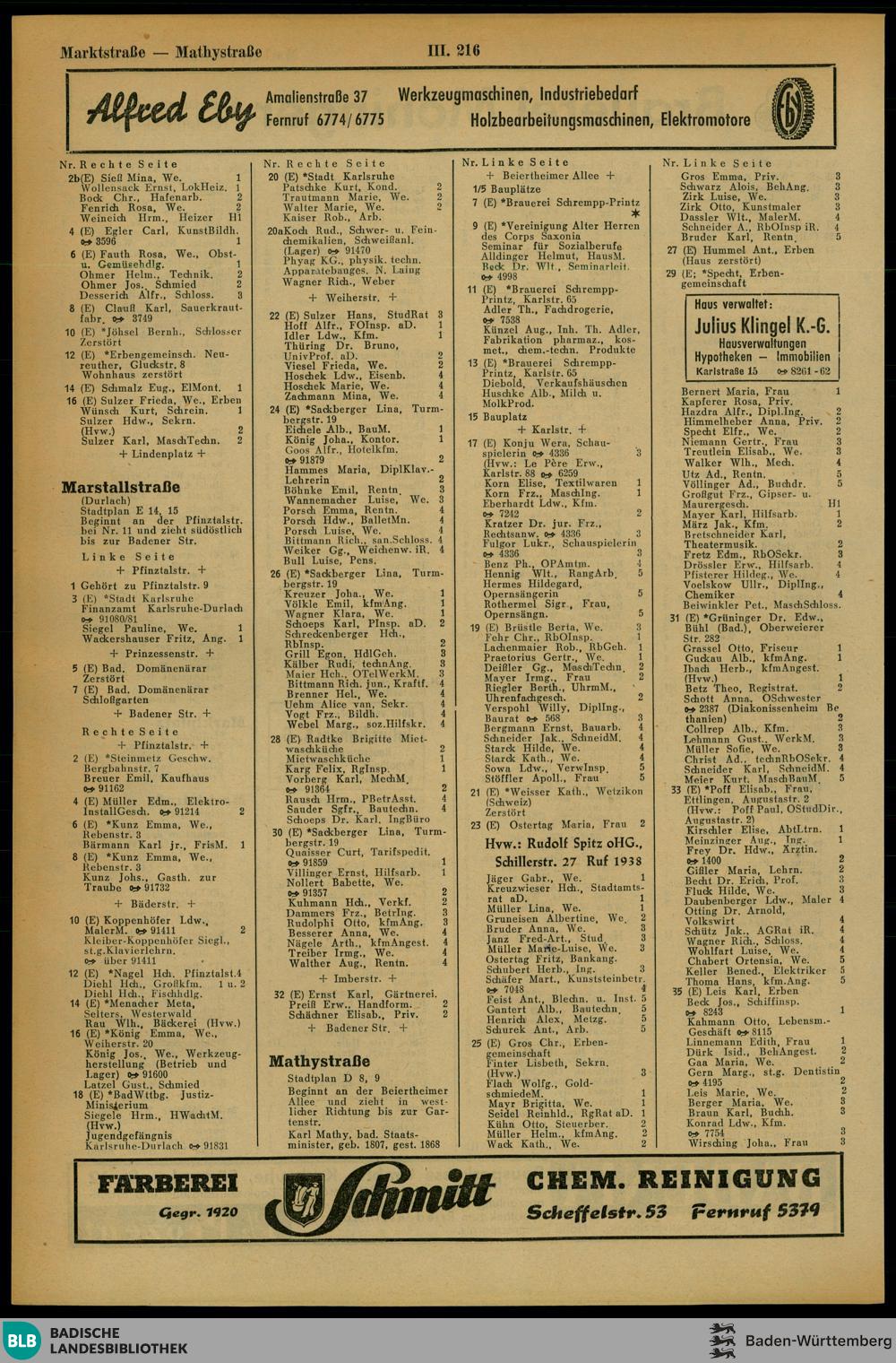 Adressbuch der Stadt Karlsruhe
