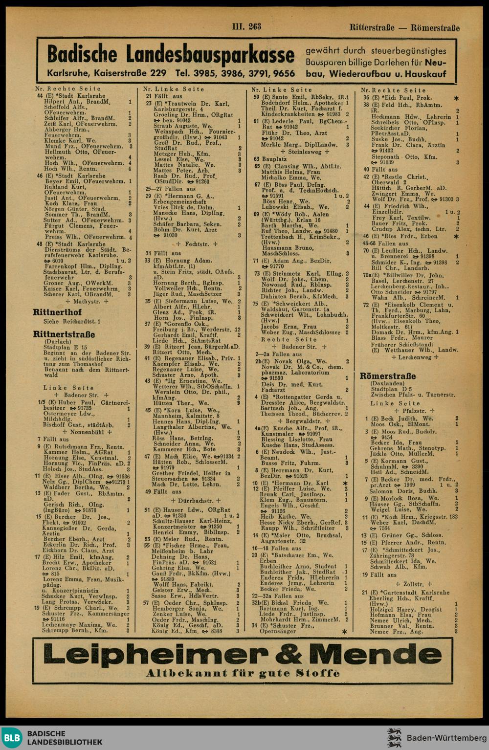 Adressbuch der Stadt Karlsruhe
