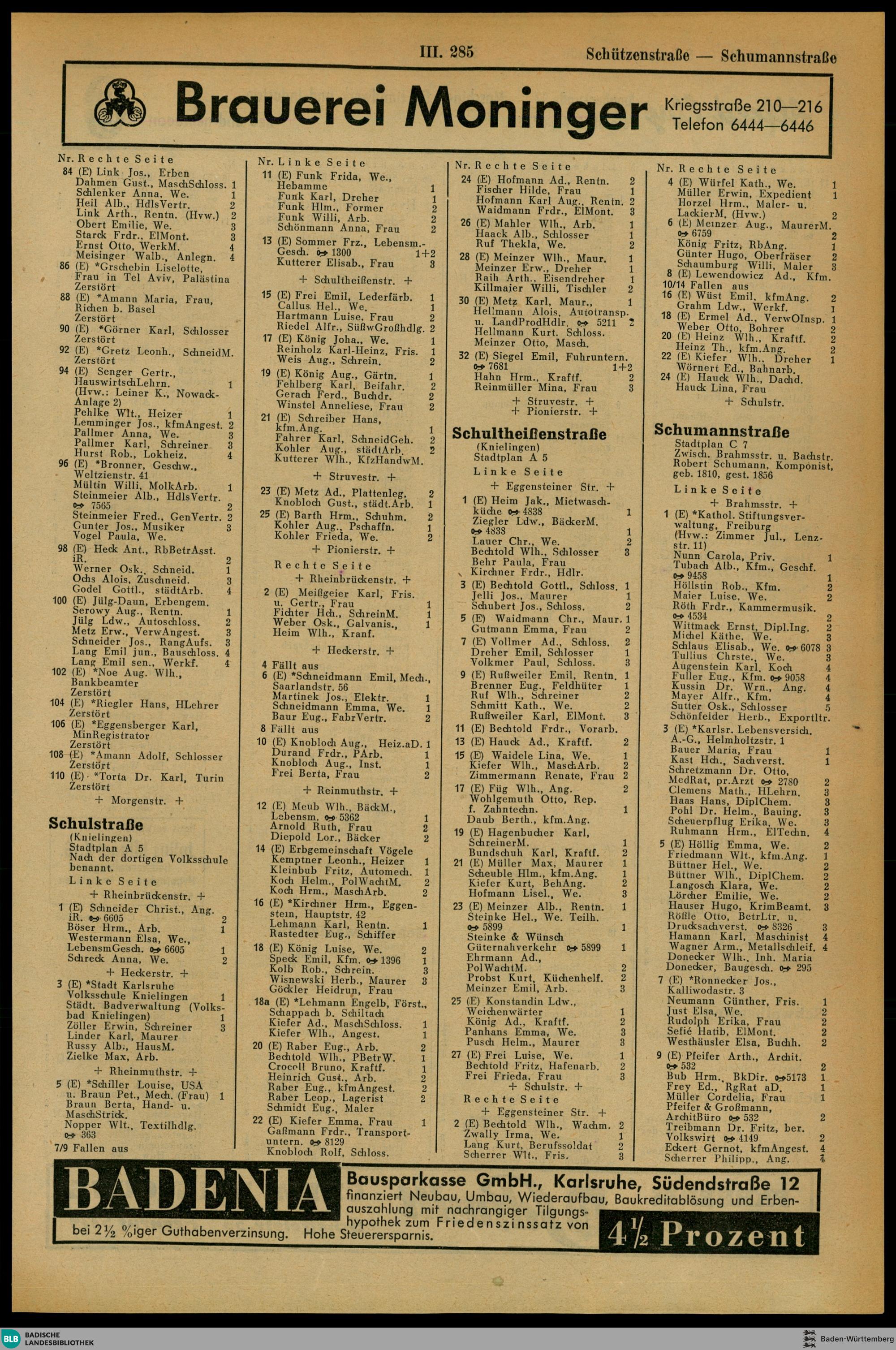 Abteilung III: Häuser-Verzeichnis mit Angabe der Eigentümer, Haushaltungsvorstände,...