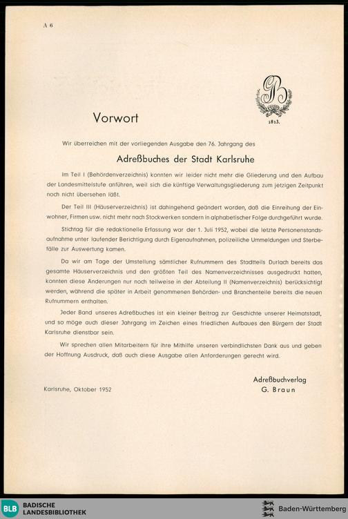 Vorwort: Wir überreichen mit der vorliegenden Ausgabe den 76. Jahrgang des Adreßbuches...