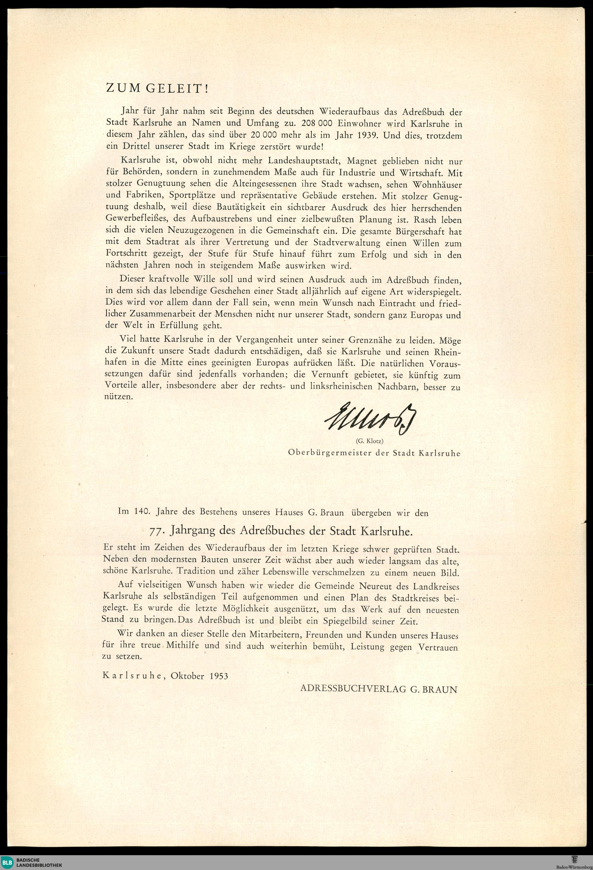 Adressbuch der Stadt Karlsruhe
