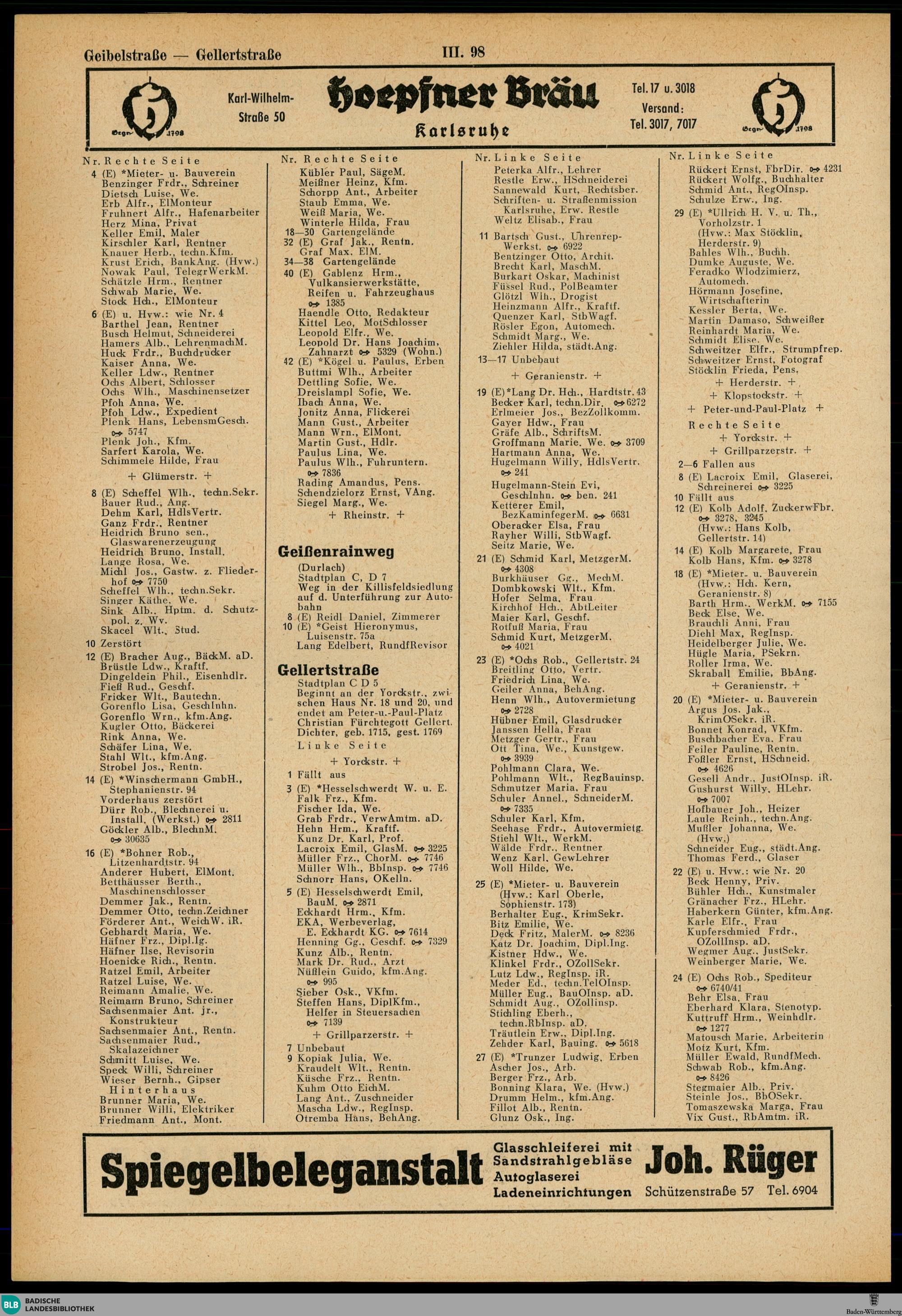 Adressbuch der Stadt Karlsruhe