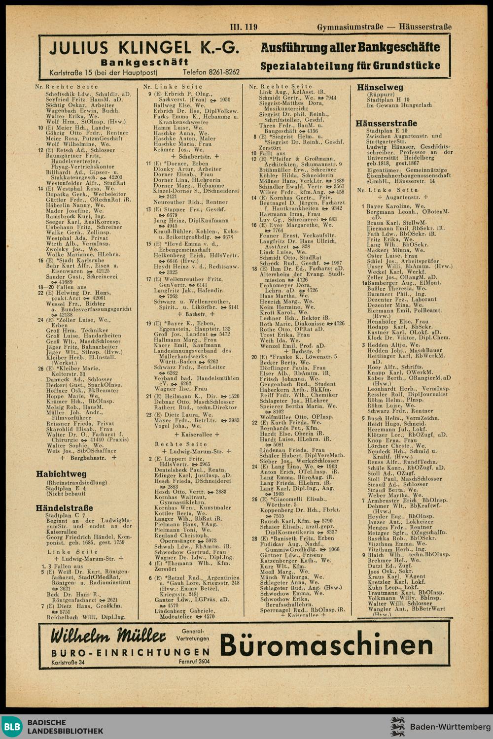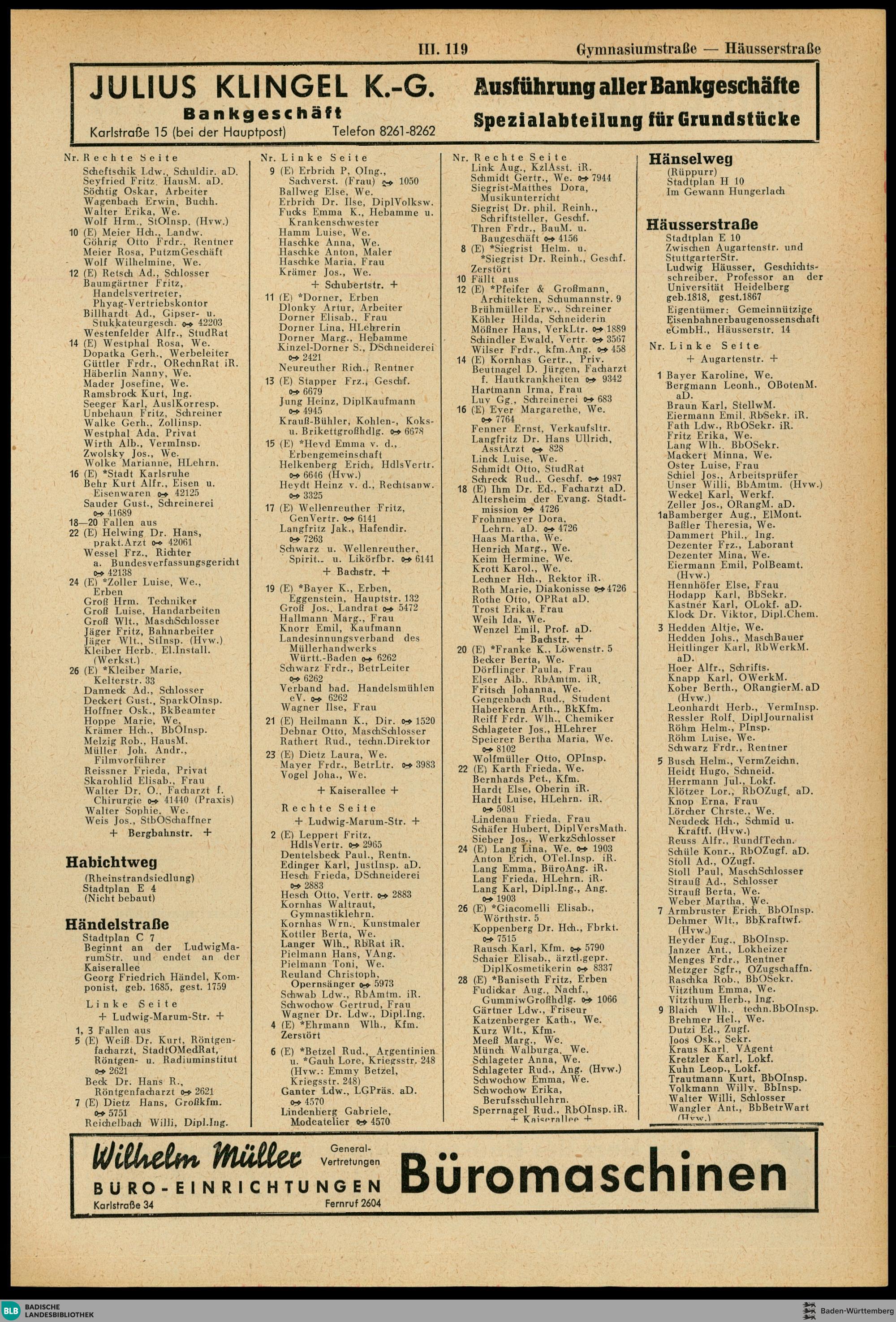 Abteilung III: Häuser-Verzeichnis mit Angaben der Eigentümer, Haushaltungsvorstände,...