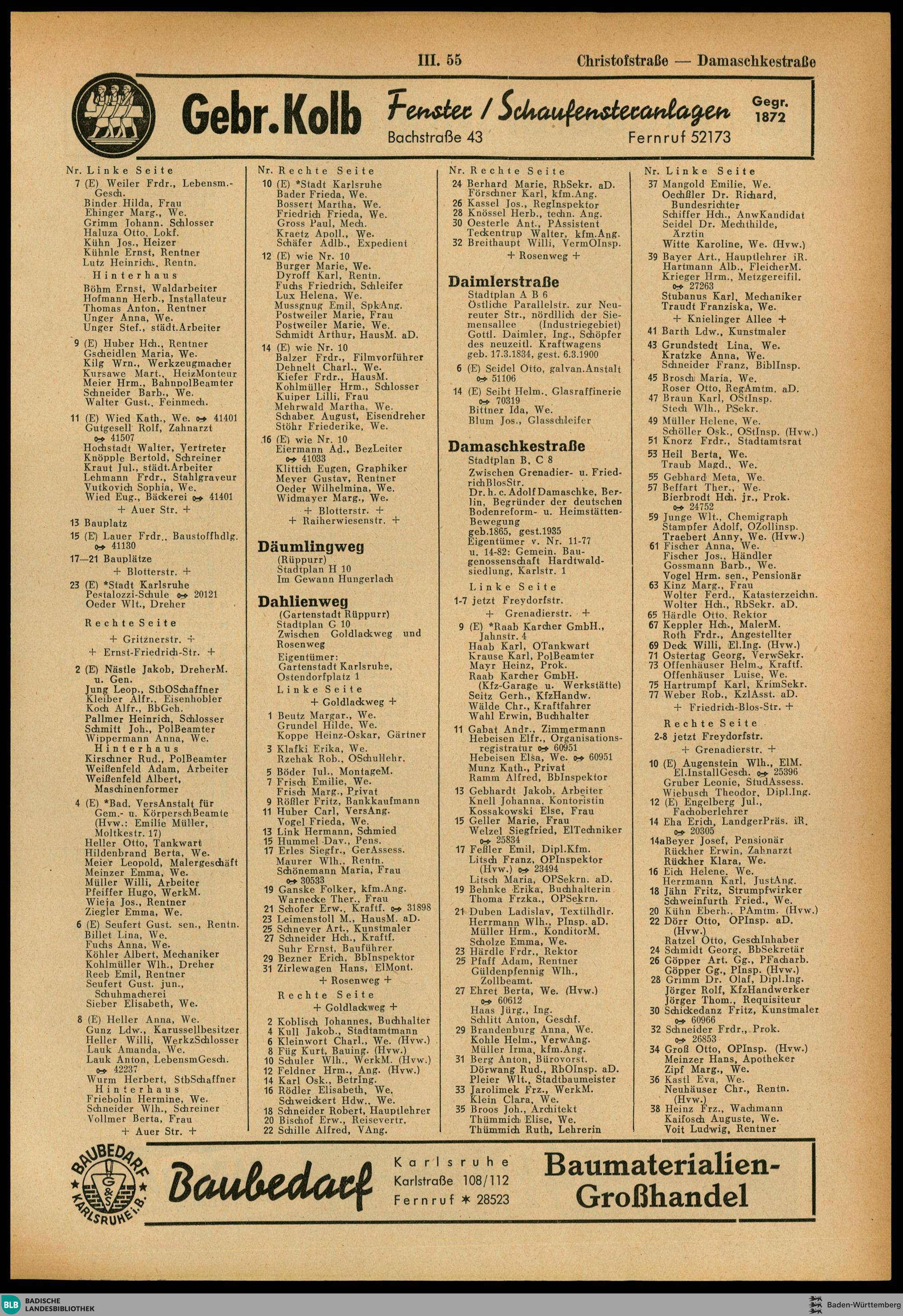 Abteilung III: Häuserverzeichnis mit Angabe der Eigentümer, Haushaltsvorstände, Behörden,...