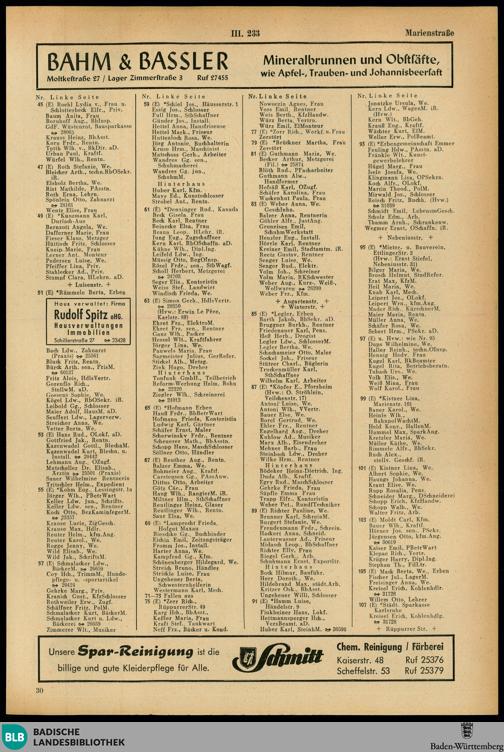 Abteilung III: Häuserverzeichnis mit Angabe der Eigentümer, Haushaltsvorstände, Behörden,...