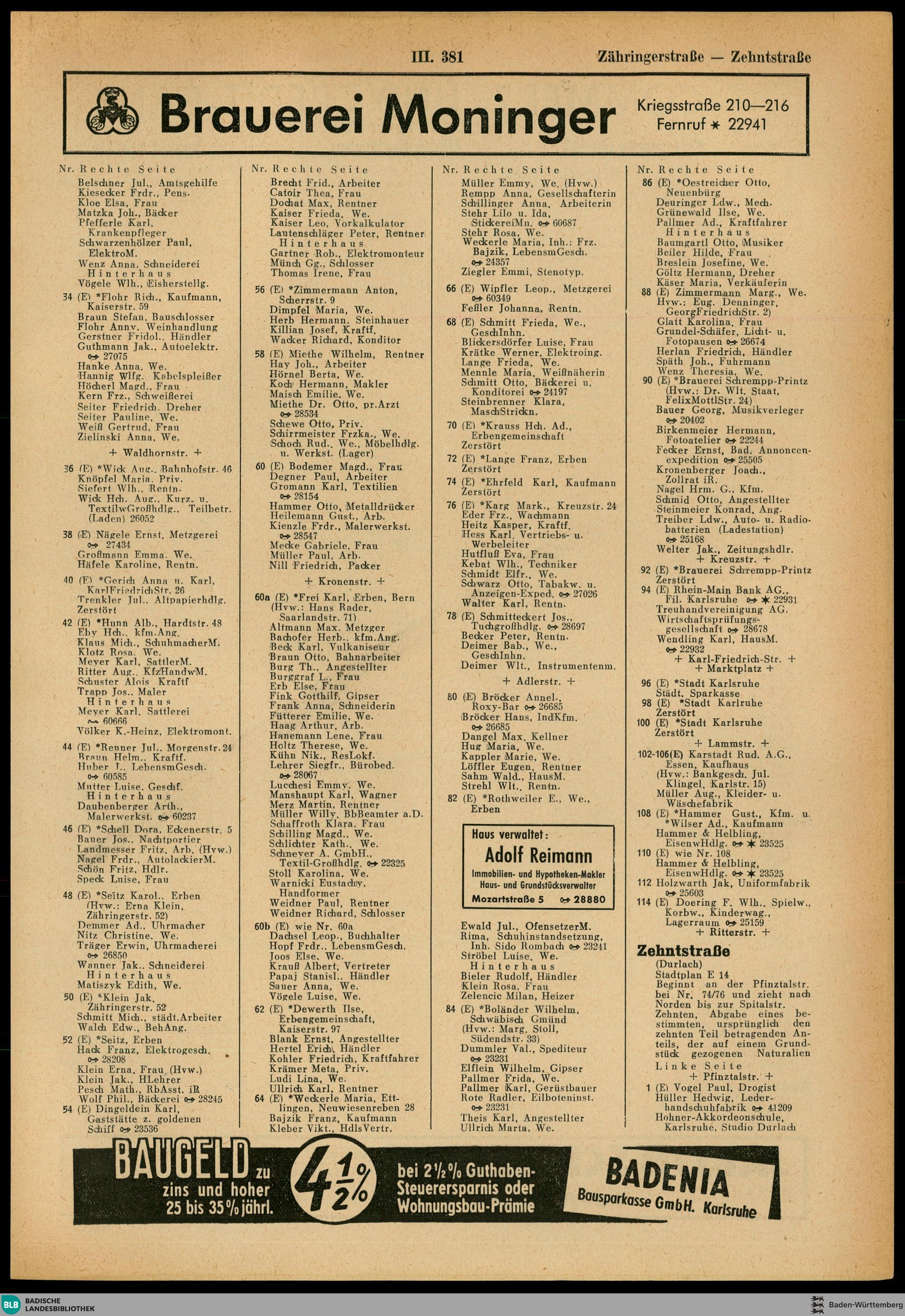 Adressbuch der Stadt Karlsruhe
